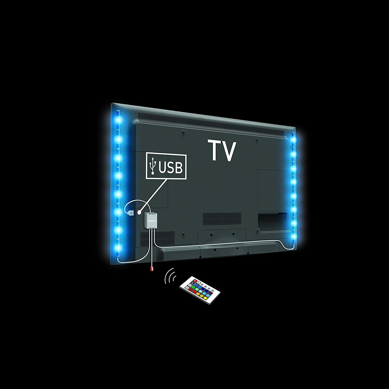 - Powered by the TV’s USB port – eliminates the need for a wall socket. Improves the TV’s perceived contrast ratio. Turns on/ off together with the TV.