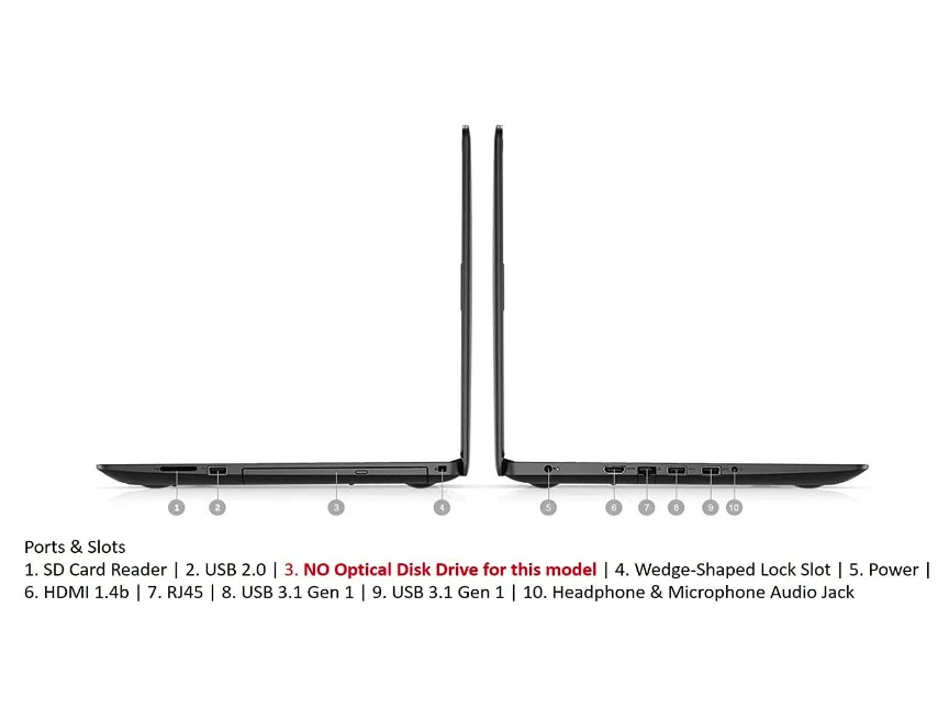 Ethernet Port; HDMI 1.4, USB 3.1 Gen 1 (x2), USB2.0 (x1), , SD Media Card slot, wedge lock slot, 1 combo headphone / microphone jack