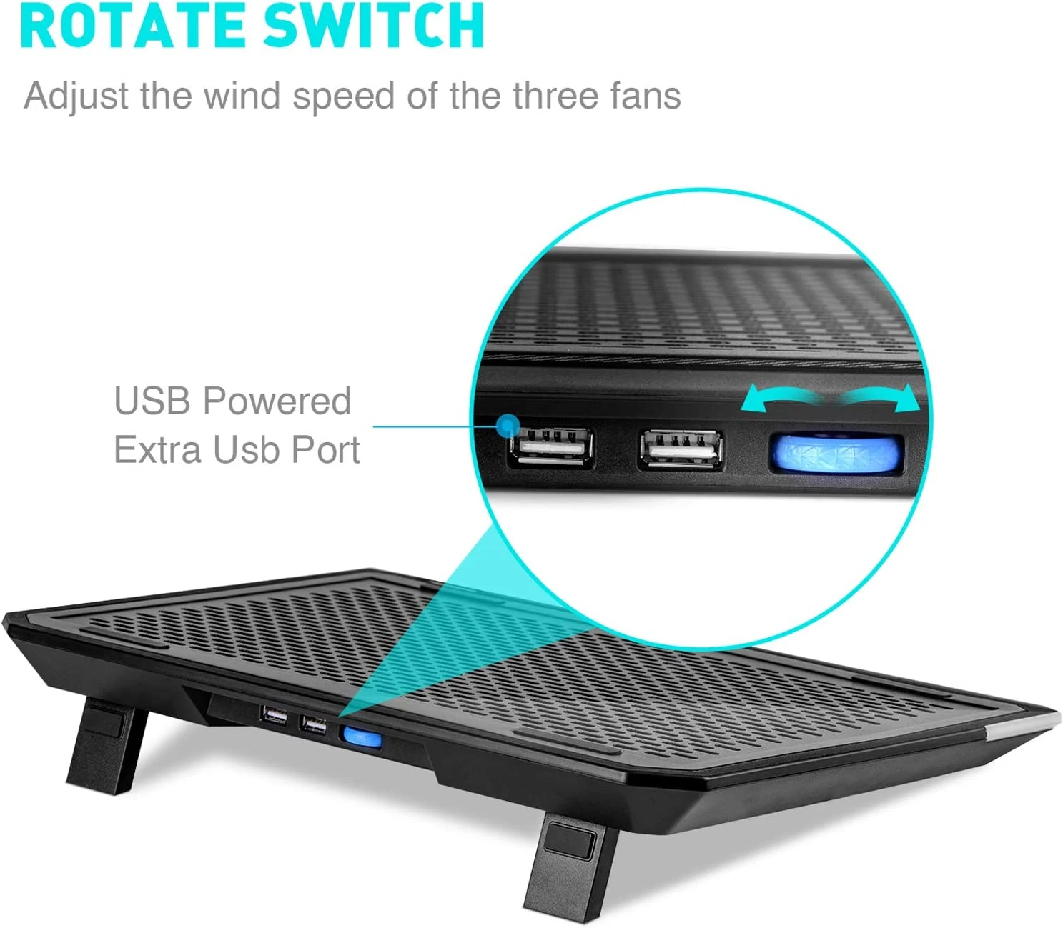 - High Speed Quiet Fan – Havit laptop Cooling Pad is with three 1100 RPM high-speed fans, provides more effective cooling effect than other 750RPM cooler. It’s super quiet and you don’t even feel any blowing of the fans to keep your laptop cool.