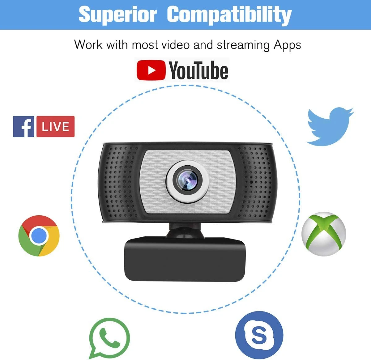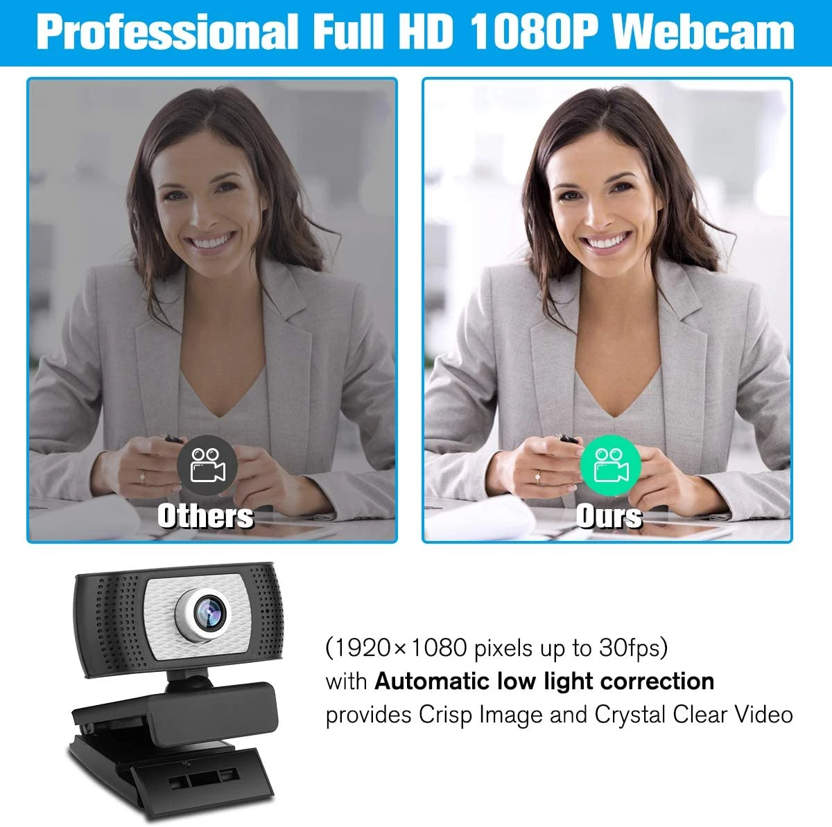 Specifications: x Full HD 1080P video calling x High resolution COMS color sensors x Built-in noise isolating microphone x Automatic low-light correction x Plug and Play, hi-speed USB 2.0 x Built-in image compression x Image focus: 5cm to infinity x Automatic brightness adjustment x Automatic color temperature x Manual focus x 3.0MP Pixels x Large window capture size: 640×480/800×600 x Transmission rate: 320×240 25F/S; 640×480 25F/S; 1280×720 25F/S; 1920×1080 25F/S x Noise-signal ratio: greater than 48dB(30F/s 220LUX) x Dynamic range: greater than 72 dB x Compatible with Windows 10, 8, 7, XP and Mac OS X
