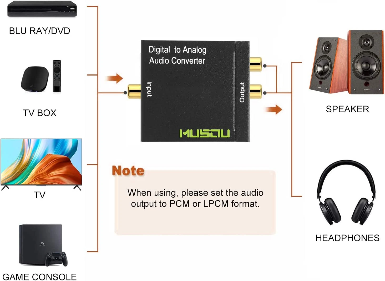 Musou Digital Optical Coax To Analog RCA Audio Converter Adapter