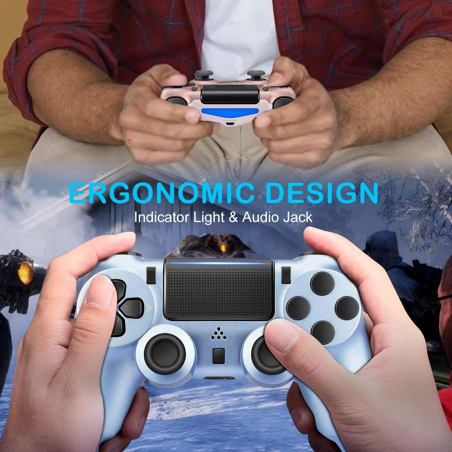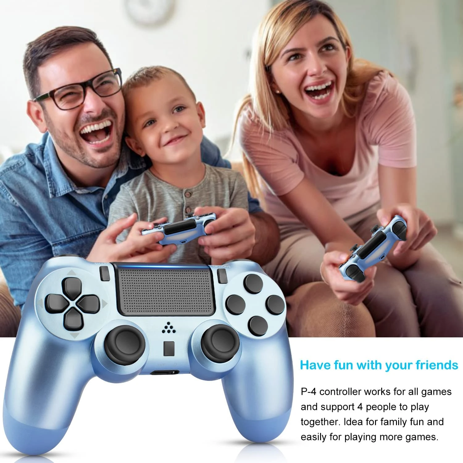 - All Features: The p-4 controllers wireless are Original size,Built-in 3.5mm audio jack,Integrated light bar,Sharing Buttons,Strong rumble motors and headphone jack, also with powerful Battery. The YU33 playstation 4 remote is widely compatible with P-5/P-4/P-4 Pro/P-4 Slim/ P-3/PC(Win7/8/8.1/10)Attention: This is the third-party p-4 controller dualshock 4. And you can only play P-4 games on P-5 console.