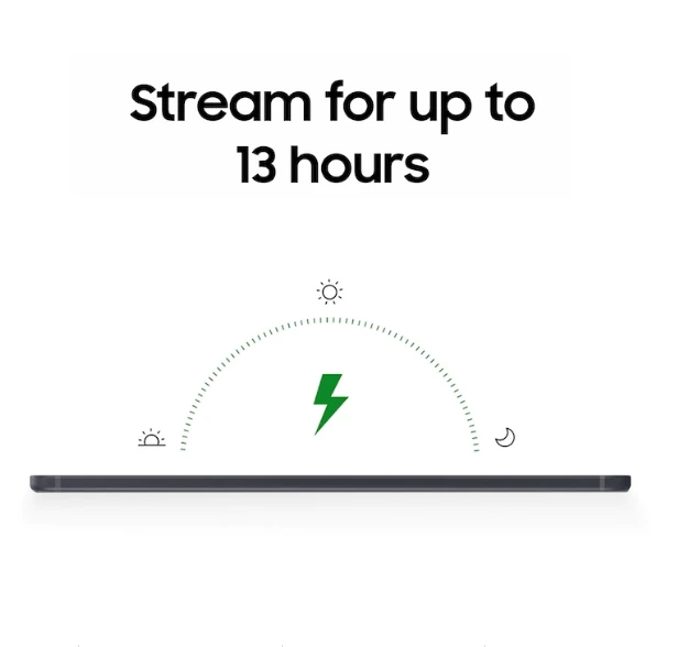 *Actual storage capacity may vary by country or region.**Micro SD card sold separately. Up to 1TB. External memory can be used to store media (photos, video and music files), but not applications. Availability may vary by country and manufacturer.***Typical value tested under third-party laboratory condition. Typical value is the estimated average value considering the deviation in battery capacity among the battery samples tested under IEC 61960 standard. Rated (minimum) capacity is 6,840mAh(Rated battery capacity). Actual battery life may vary depending on network environment, usage patterns and other factors.****Actual network speed may vary based on distance and network quality.*****Images simulated for illustrative purposes.
