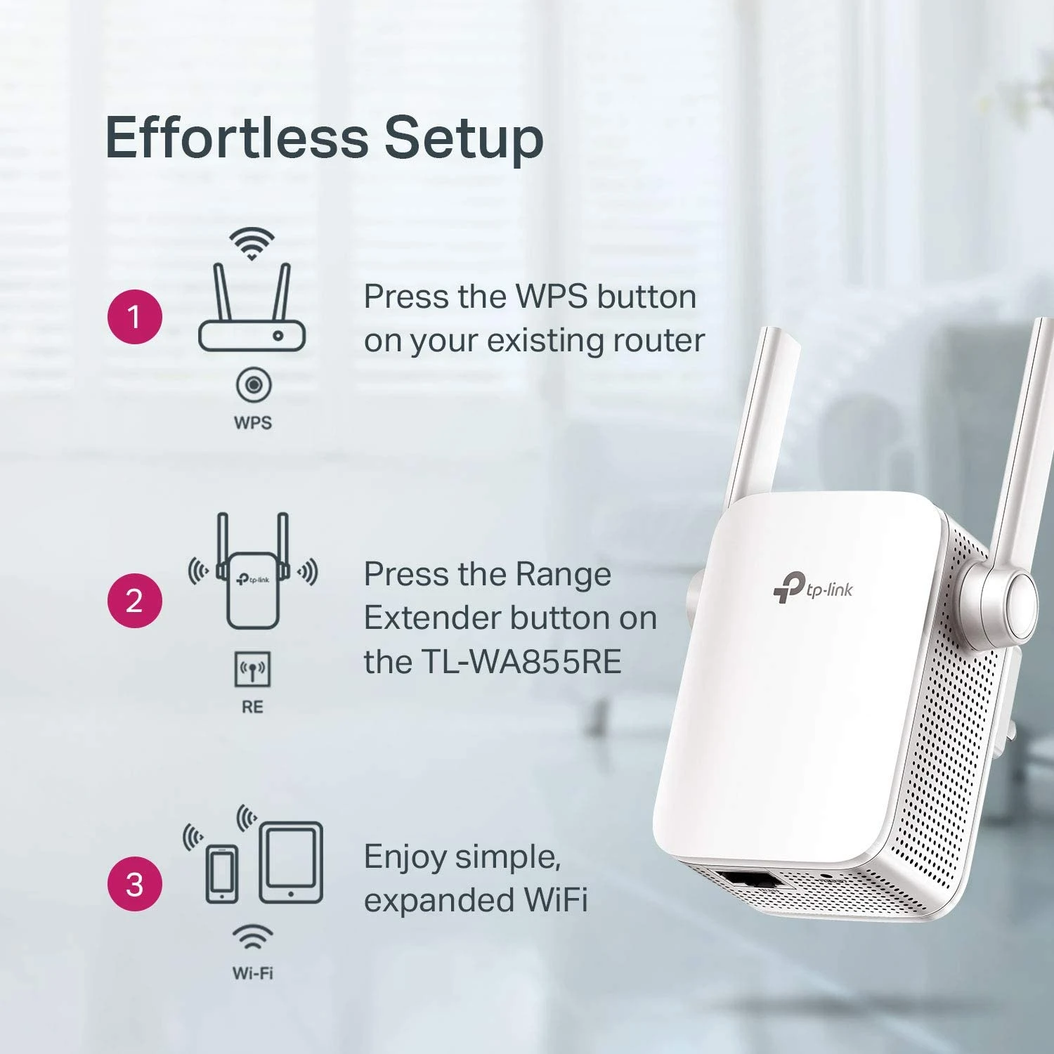 The TL-WA855RE range extender expands your router’s signal to provide strong and stable WiFi to your home. Watch movies, stream music and listen to your favorite podcasts without worrying about dead zones or spotty signals.